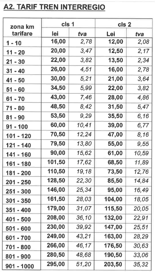 * Pentru distanta kilometrica 1-40 km, achizitionarea tichetului de rezervare este optionala, indiferent de categoria trenului. Stationarea/ocuparea unui loc nu este permisa la vagoanele de dormit sau cuseta fara achitarea suplimentului de pat.